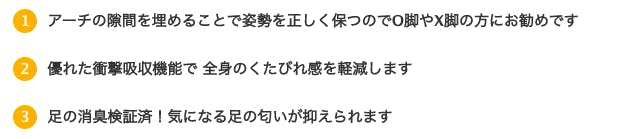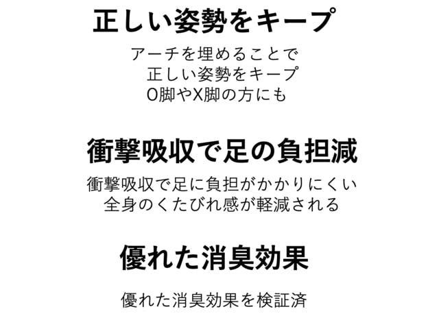 足裏のアーチの隙間を埋めることで正しい姿勢をキープします