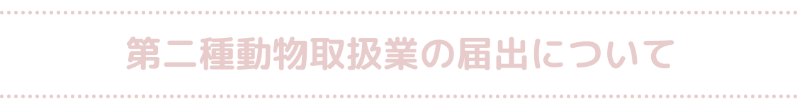 2013年9月1日から、非営利の活動であっても、飼養施設を有し、一定頭数以上の動物を取扱う場合(譲渡し・保管・貸出し・訓練・展示等)には、飼養施設を設置する場所ごとに、あらかじめ第二種動物取扱業としての届出が必要になりました。