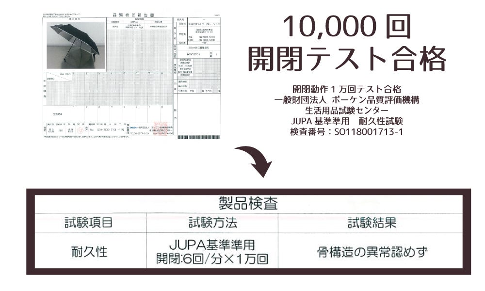10,000回開閉しても壊れにくい傘です。