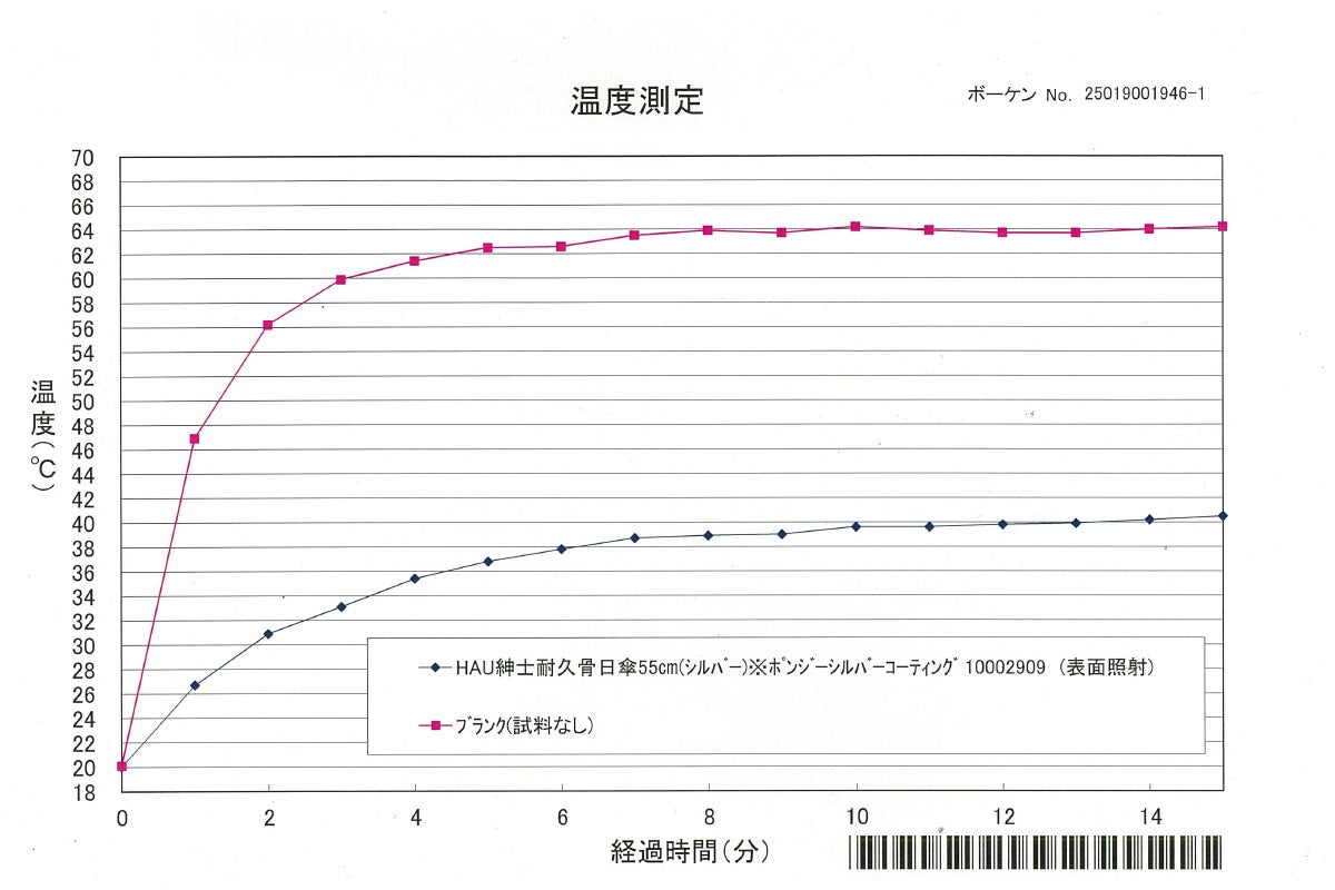 この傘を使用すると、温度上昇率が低くなるため暑さ対策としてもご使用されることをお勧めします。
