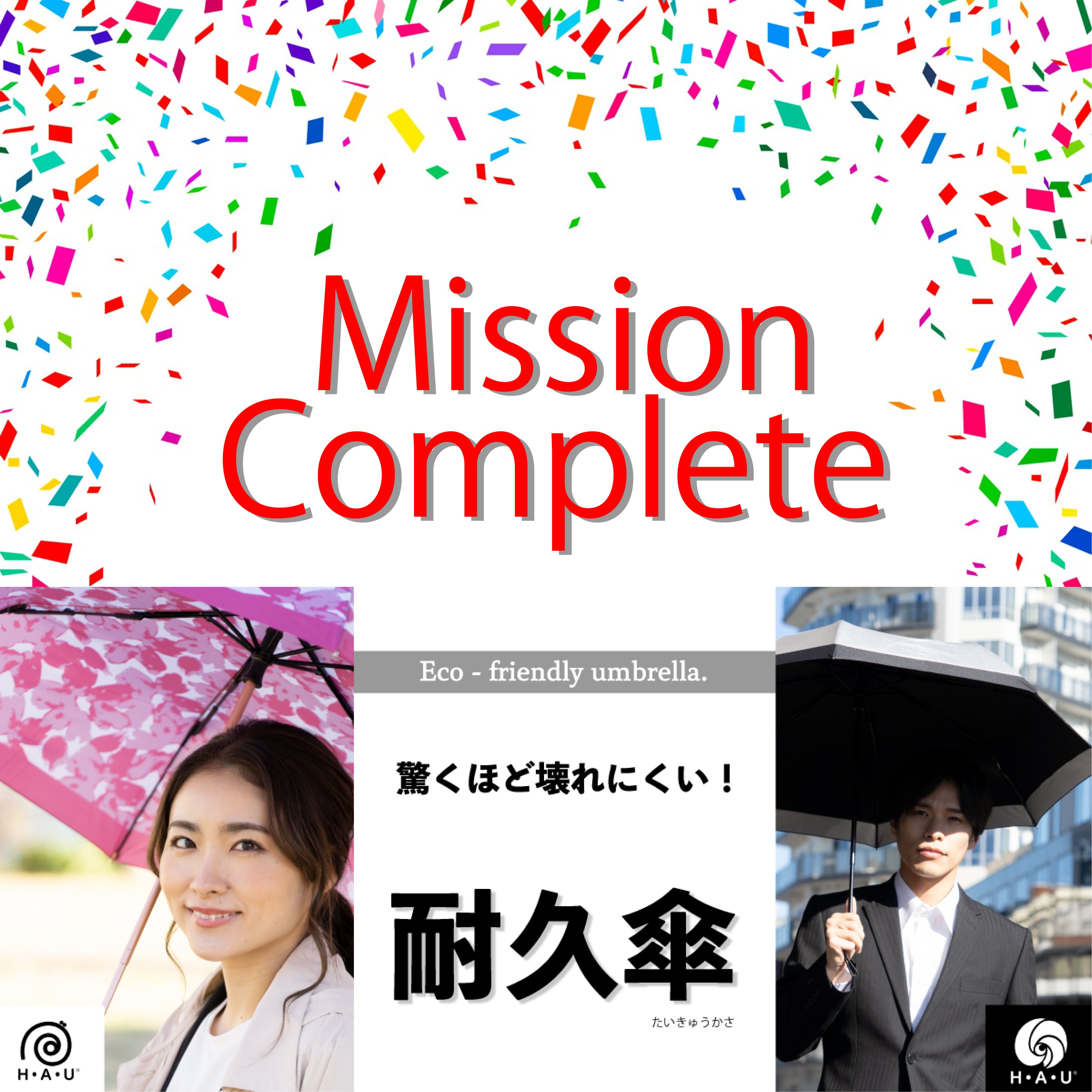 「H・A・U」ブランド 耐久傘をご使用頂き、雨の日における憂鬱感を払拭できればうれしく思います。