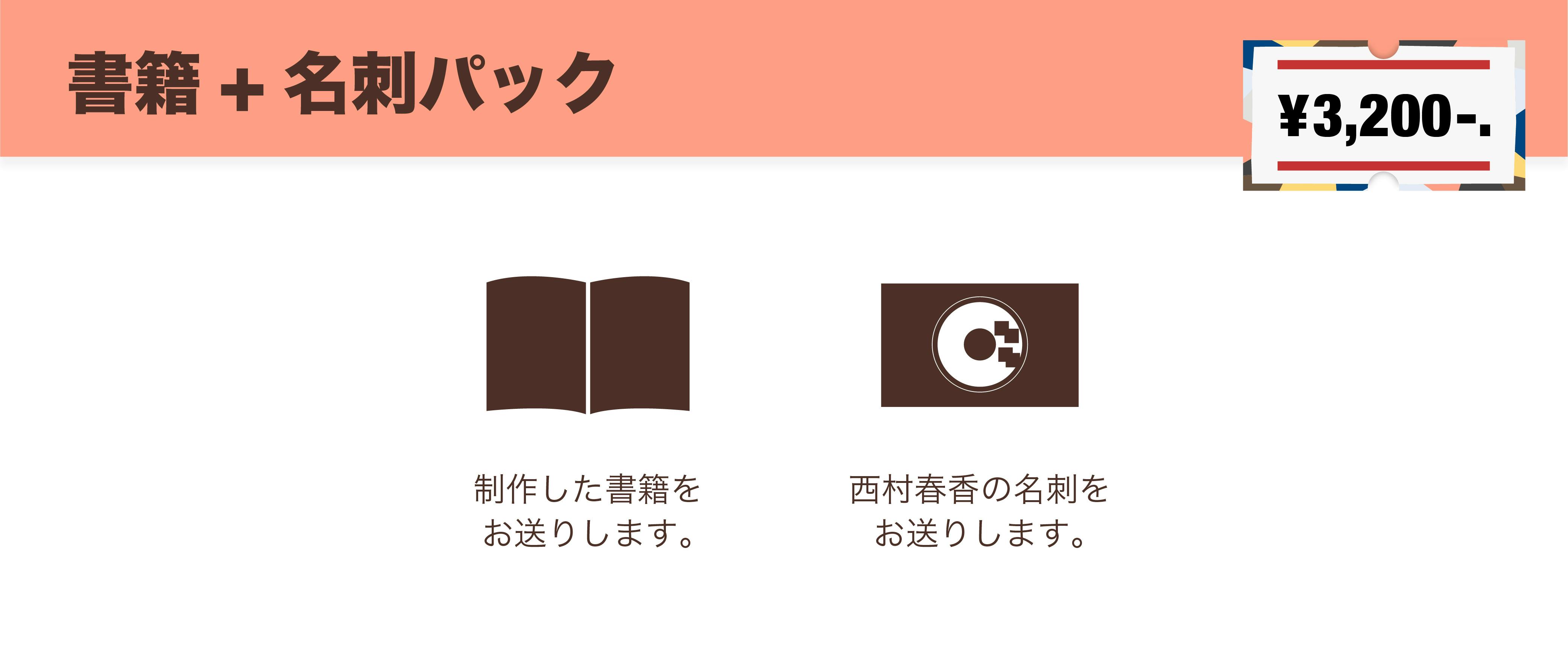 ・関東圏内であれば西村が直接書籍と名刺をお渡しに上がります。西村を3時間連れ回すことができます。内容については事前にご相談ください。