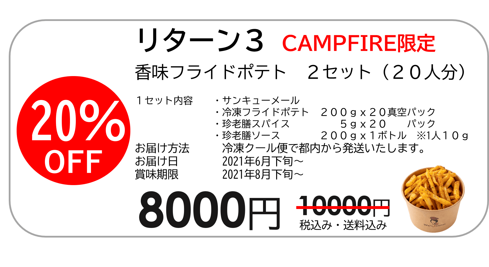 今回のプロジェクトで「ウェイズキッチン」がご提供する香味フライドポテトと四川マーラー麺を一人でも多くの人に食べていただき、冷凍食品を加熱しただけで確かに自宅で本格的な四川料理を味わえる、日本でこれまで食べたことがなかった旨味とコクと香りがする、そして少し辛いけどクセになる旨さだ!、「ウェイズキッチン」の商品なら間違いがない、と信頼関係を築いていくことが目的です。そして第三弾、第四弾と新しいメニューをご提案して、多くの方に信頼され支持されるようになった時点でイメージイラストのようなテイクアウトとデリバリー専門店のチェーン展開を実現したいと思っております。