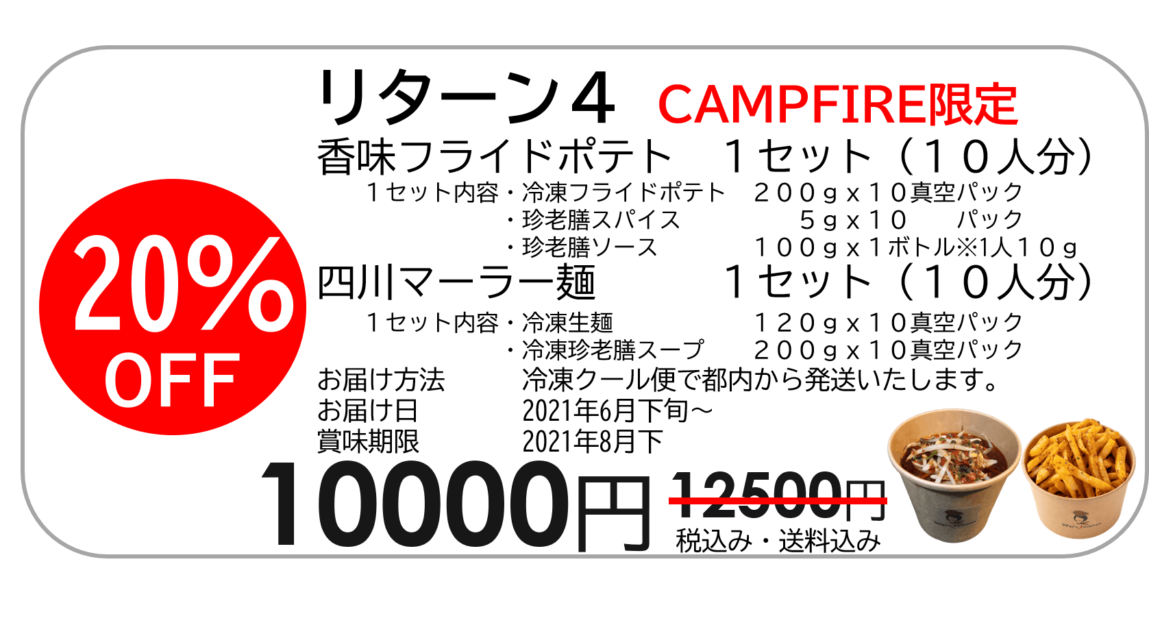 食品衛生管理者の免許を取得して、調味料、香辛料、加工スープ、生麺等は各受託製造販売免許取得工場と提携いたします。2021年6月末から商品を発送いたします。プロジェクトの成功は私が作った「香味フライドポテト」と<四川マーラー麺」を一人でも多くの方に食べていただき、「ウェイズキッチン」の信頼を得ることにかかっています。ヘルシーで美味しいメニューの種類も充実させていきます。皆様からのあたたかいご支援をお待ちしています。最後まで読んでいただき本当にありがとうございました!
