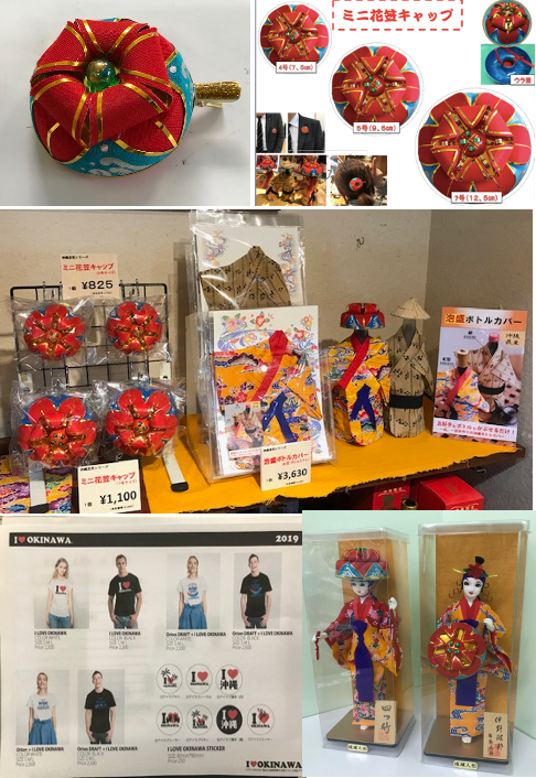 ❶花笠寿(ハナカサ〜ジュ)、❷ミニ花笠(4号・5号・7号)、❸かなさ人形、❹琉球人形、❺その他の販売ついて代理店の許可を頂いております。