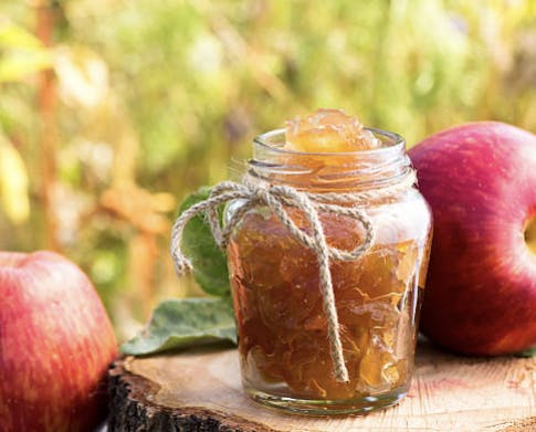 りんごを乱切りにして作り上げた少し食感の残るジャムにレーズンを加えてシナモンをアクセントに仕上げた、酸味・甘味のバランスが絶妙なジャムです。トーストしたパンの上に載せるだけで手軽にアップルパイのような味を楽しんでいただけます。