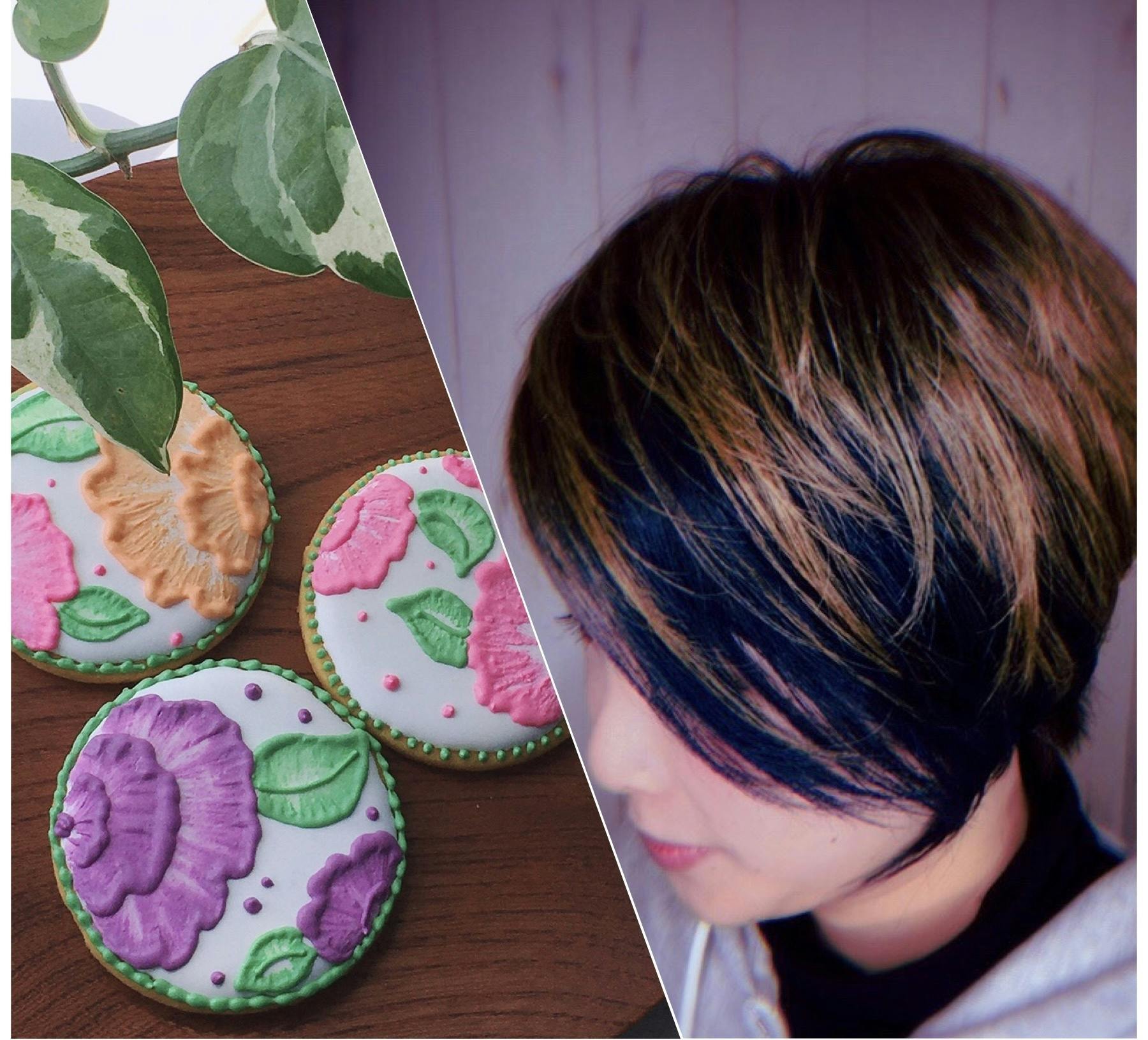 アイシングクッキーに興味を持ち、研修や独学での経験を積み、現在ではバースデーケーキに飾るキャラクタークッキーなどの制作を主にさせて頂いております