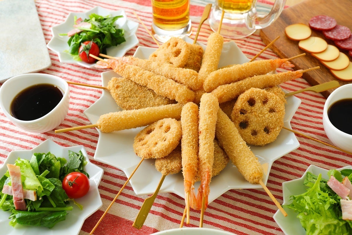 より多くの方々、全国の方々に、ご家庭でも串カツを召し上がっていただき、串カツを日本を代表する食文化にしたいという思いで、この度、お店で食べるおいしさはそのままに冷凍串カツを販売させていいただきたいと思います。