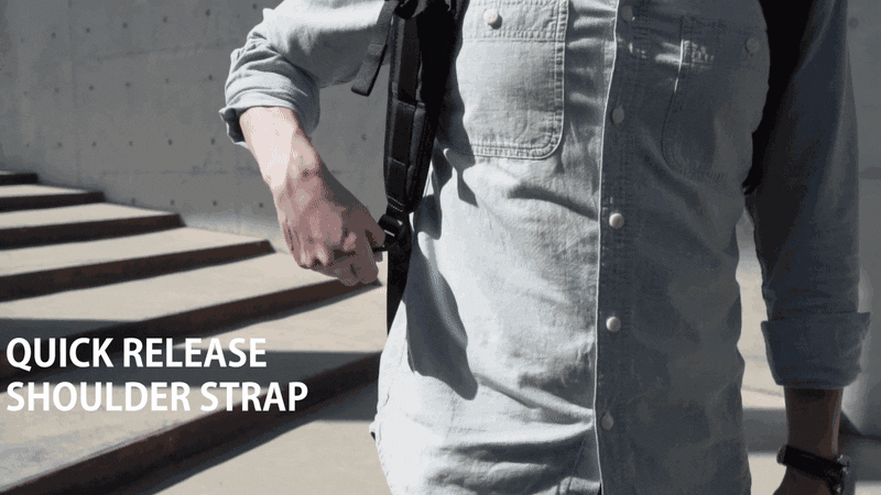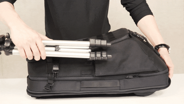 (1)付属ポーチはバックパック本体外側の上段と下段に取り付けることができます。磁気バックルで簡単に取り外し可能な上、最大30kgの負荷にも耐えられるので安心です。