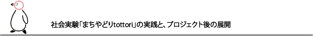 また社会実験を通して得た経験や知識、事業や人材ネットワークをエリアマネジメントを支える柱として育てていくと共に、まちづくりに継続的に関わることで、鳥取らしい賑わいづくりの役割の一端を担うことができればと思っています。