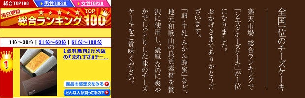 チーズケーキが楽天市場の総合ランキングで1位となり、メディアでも多数取り上げていただきました。
