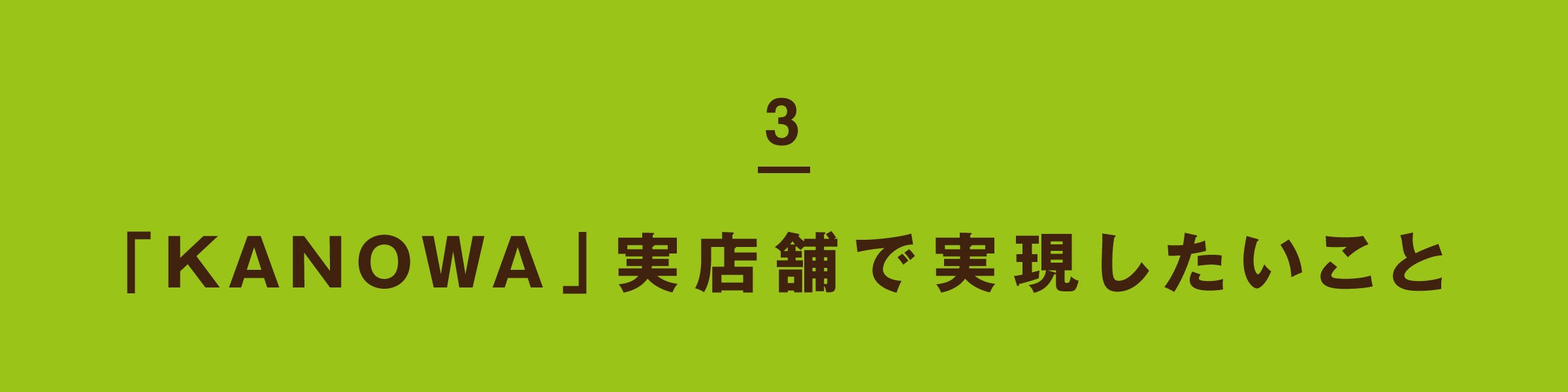それぞれの得意を持ち寄り、チームで取り組む「共創」というKANOWAの想いに基づき、今回の実店舗は、いろんな方々と共にお店作りができればと考えております。そこでさらにいいものを作り、福祉の活躍の場、表現の場を広げながら、和歌山の食を盛り上げたい。