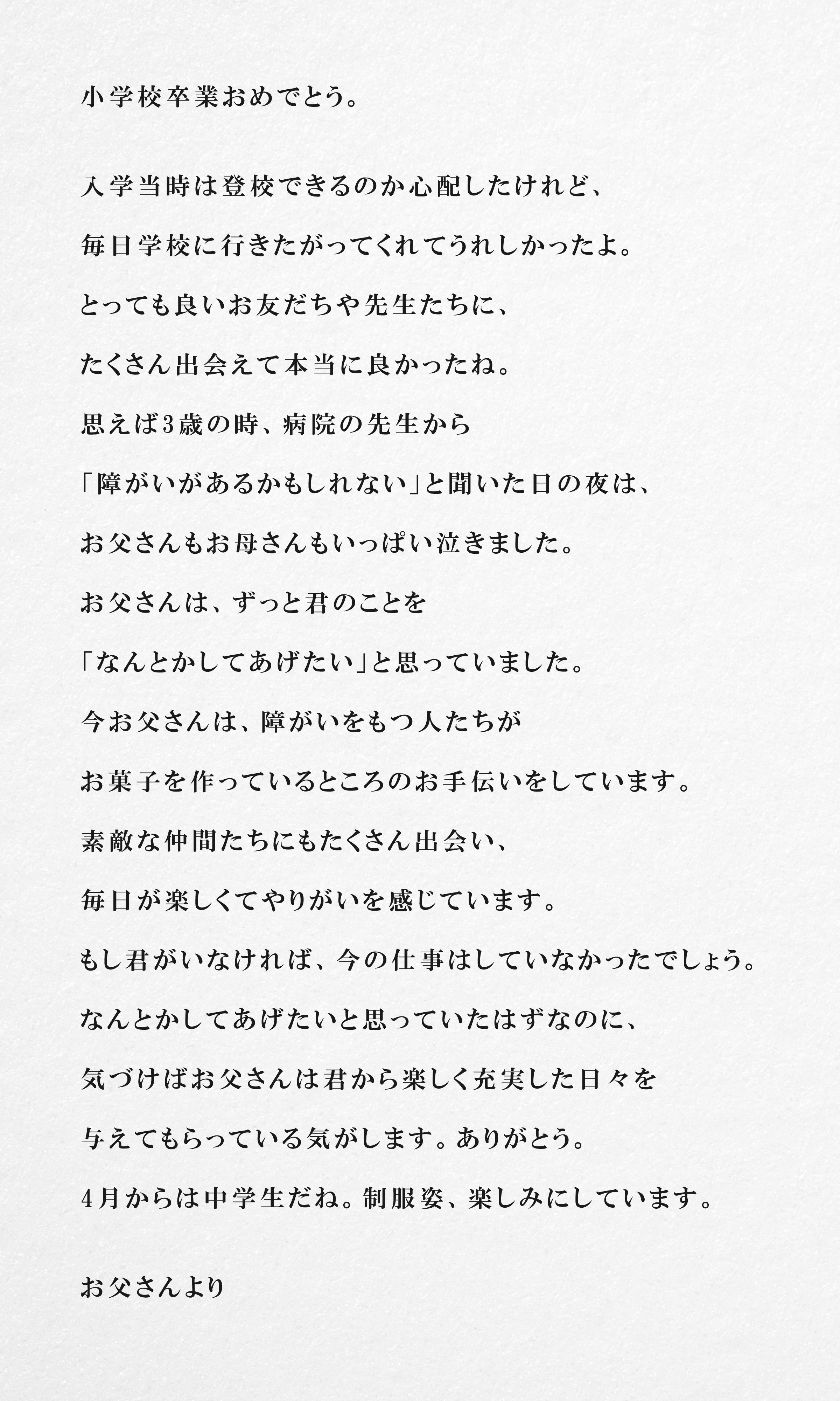(小学校卒業時にSNSで綴った息子へのメッセージです)