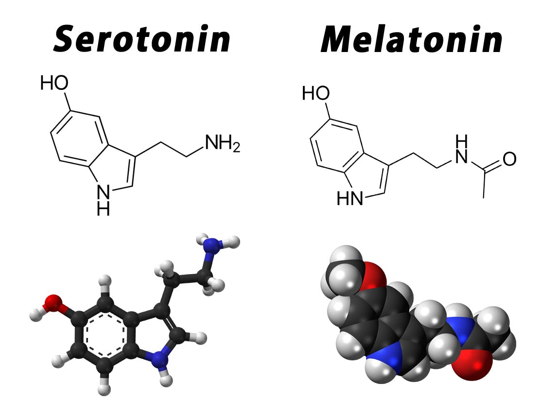 セロトニンは脳内の神経伝達物質のひとつです。このホルモンは、安心感、心理的満足感、そして幸福感をもたらします。そして夜にはメラトニンに変化し、私たちが深い睡眠レベルに誘う必要なものとなります。