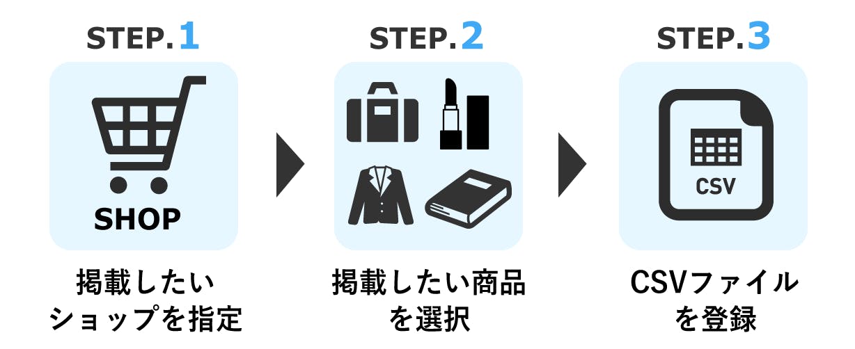 但し、この作業が面倒といったとき等には、CSVファイルの登録による方法だけではなく、貴店サイトの巡回による自動掲載(特許取得済み)を組み合わせて省力化もできます。いつでも態様の変更は可能です。