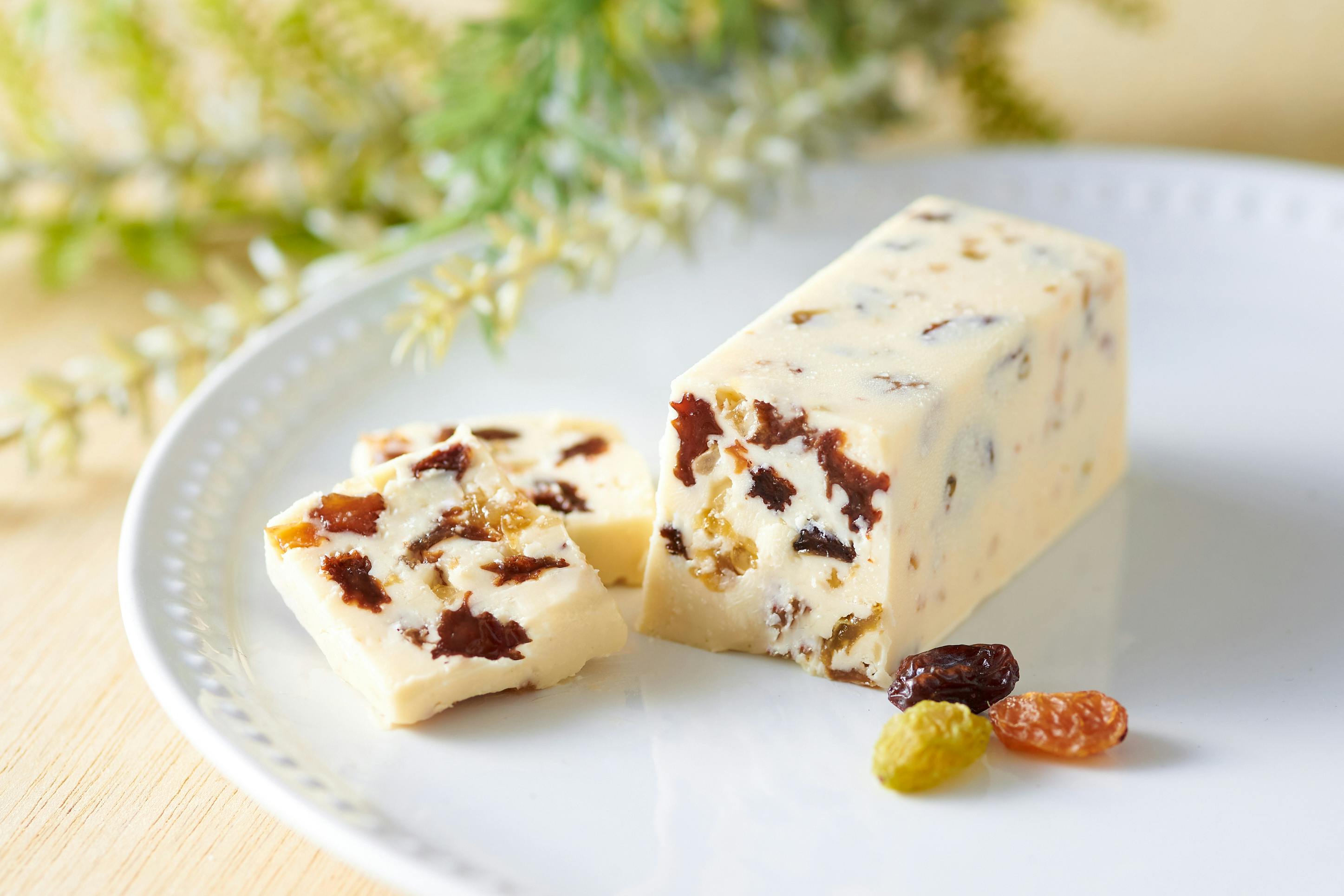 バターを美味しく食べることを追求して作り上げた『プレミアムバター』。しっかりとしたバター感が楽しめるよう、王道かつ芳醇な仕上がりにしました。ドライフルーツとの絶妙なバランスで、味わい豊かな食べるバターです。
