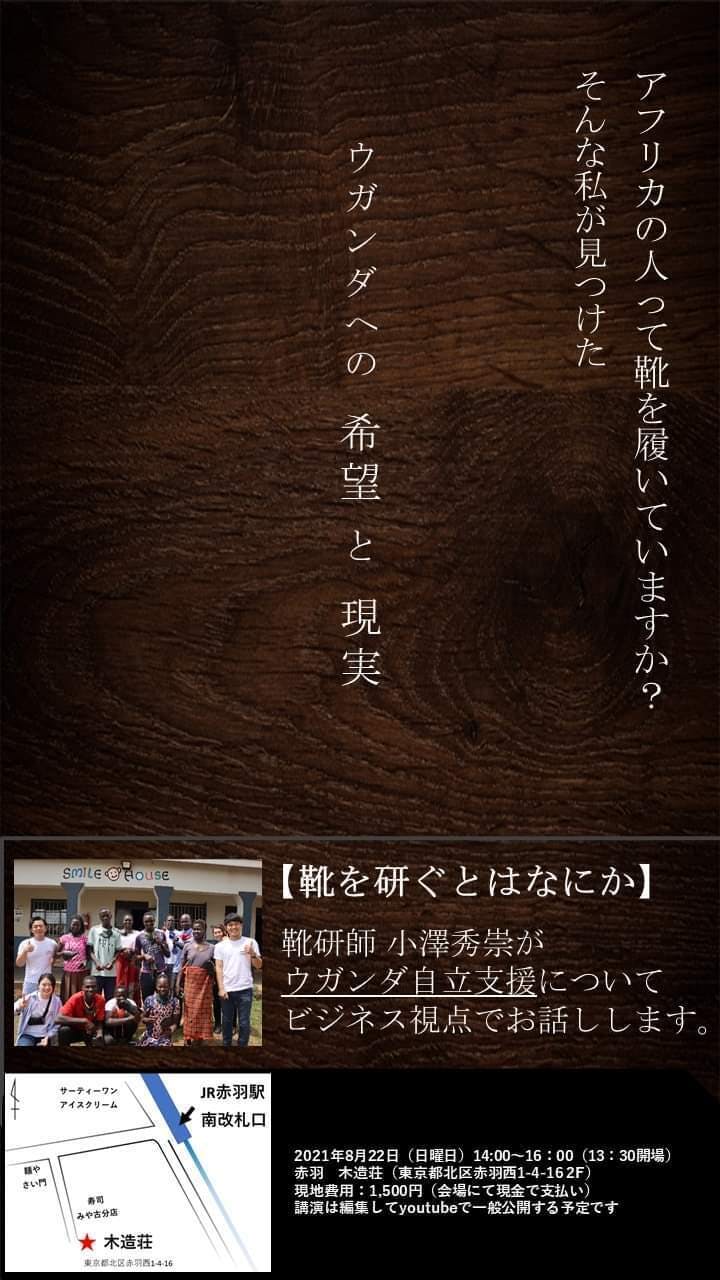 2021/08/03 12:50こんにちは。ウガンダの選手を匿ったことはございません!(笑)小澤です。よろしくお願い申し上げます!さて、早速ですが【NGOアフリカ友の会】ご依頼ご協力のもと講演会を行います。8月22日14時~是非会場までお越し下さい!JR赤羽駅また、打ち合わせの段階ですが、・アフリカをはじめとする世界各国で活動する医療学生向けの講演会・ZOZOTOWNスタジアムでのスパイクメンテナンスワークショップなどなど、行う予定です。他、講演会のご依頼やワークショップも受け付けておりますので、お申し付けください。 もっと見るオンライン講座