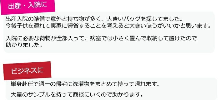 旅行・帰省・引越し・クリーニング・災害時の一時避難バッグとしても利用できます。