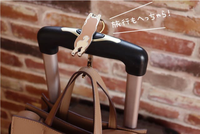 スーツケースのハンドルに寝そべれば、ハンドバッグやエコバッグを引っ掛けてくれます。