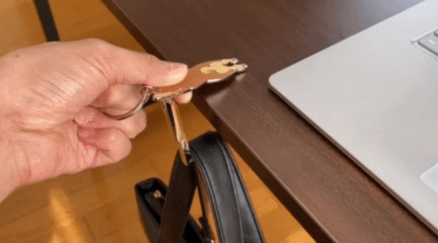 【bow hook shiba】はカバンをテーブルやイスに引っ掛けるだけ。