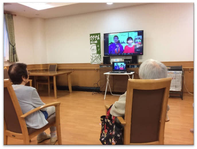 施設で配信を楽しんでくださっている様子