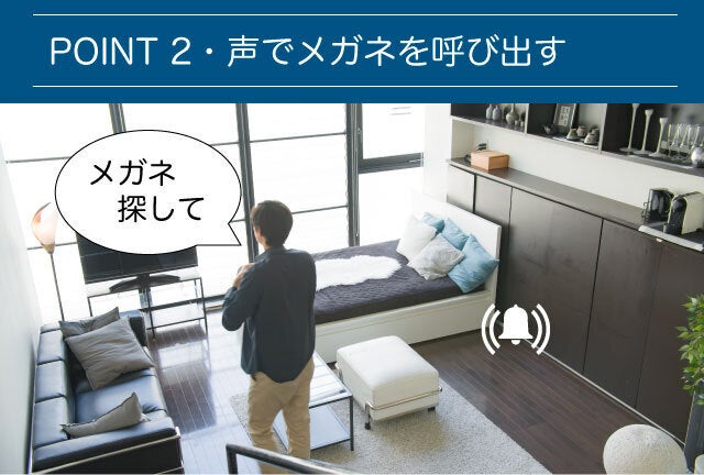 スマホをワンタップするだけ!音でメガネの場所を知らせてくれます。