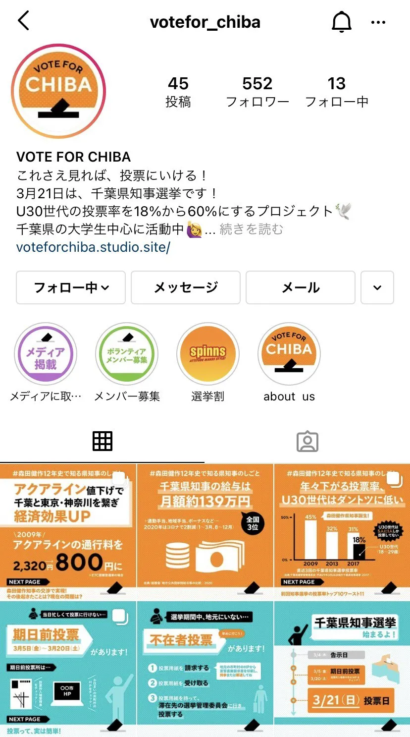 とにかく、選挙をわかりやすく。これさえ見れば投票に行ける千葉県知事選挙専用のInstagramアカウントを運営しています。ジャンダーや環境問題などU30世代が気になるトピックに関する千葉県の情報、今回の選挙の争点や候補者比較などをインフォグラフィックでまとめています。