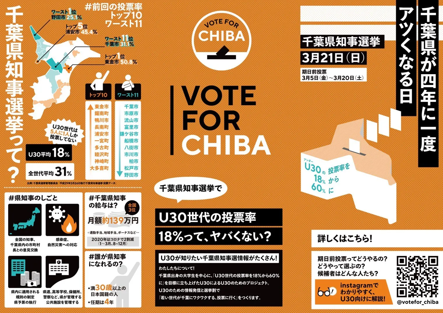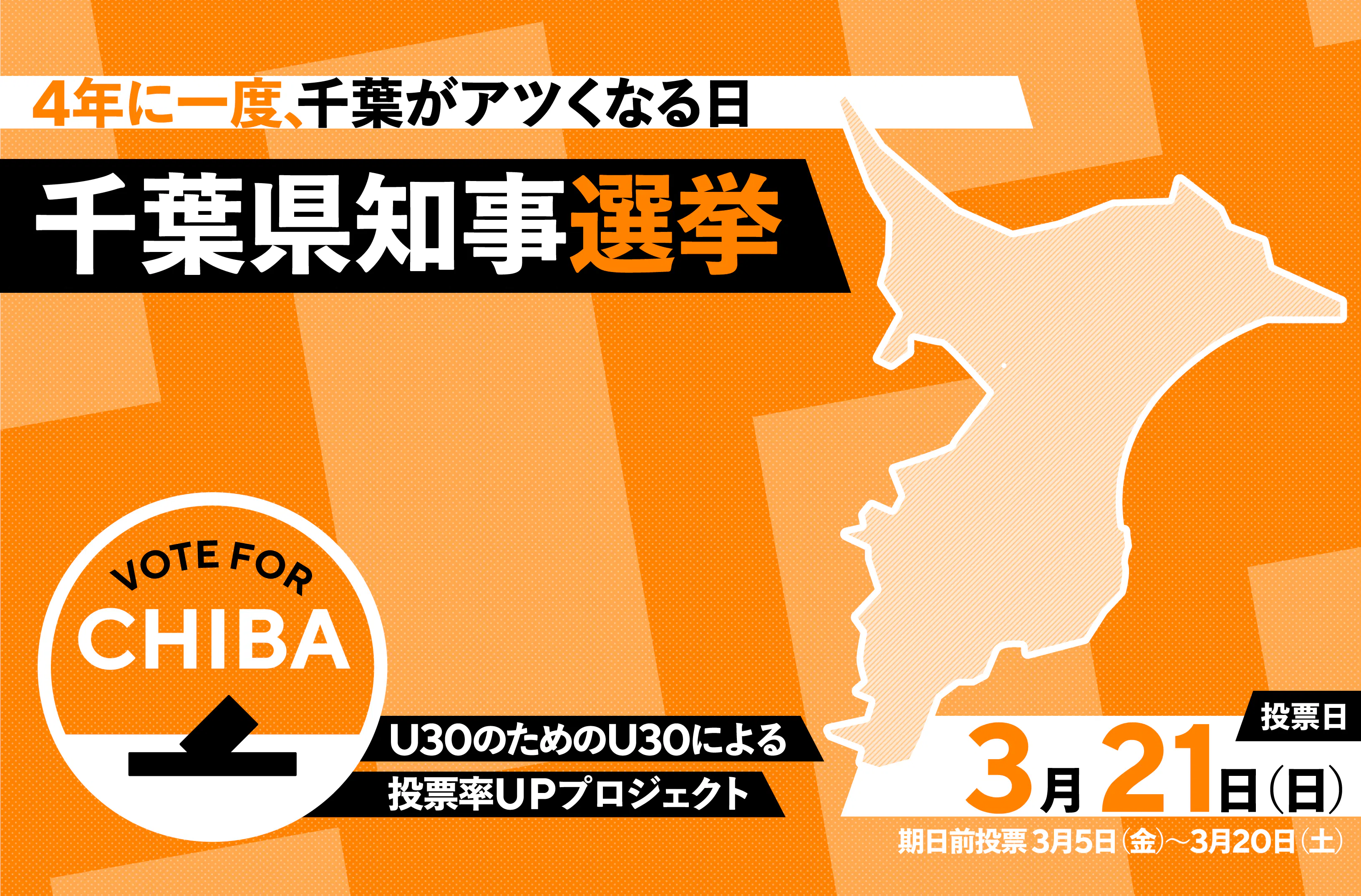 現在私が取り組んでいるのが、 2021年3月21日投票日の千葉県知事選の投票率をあげるプロジェクト「VOTE FOR CHIBA」です。