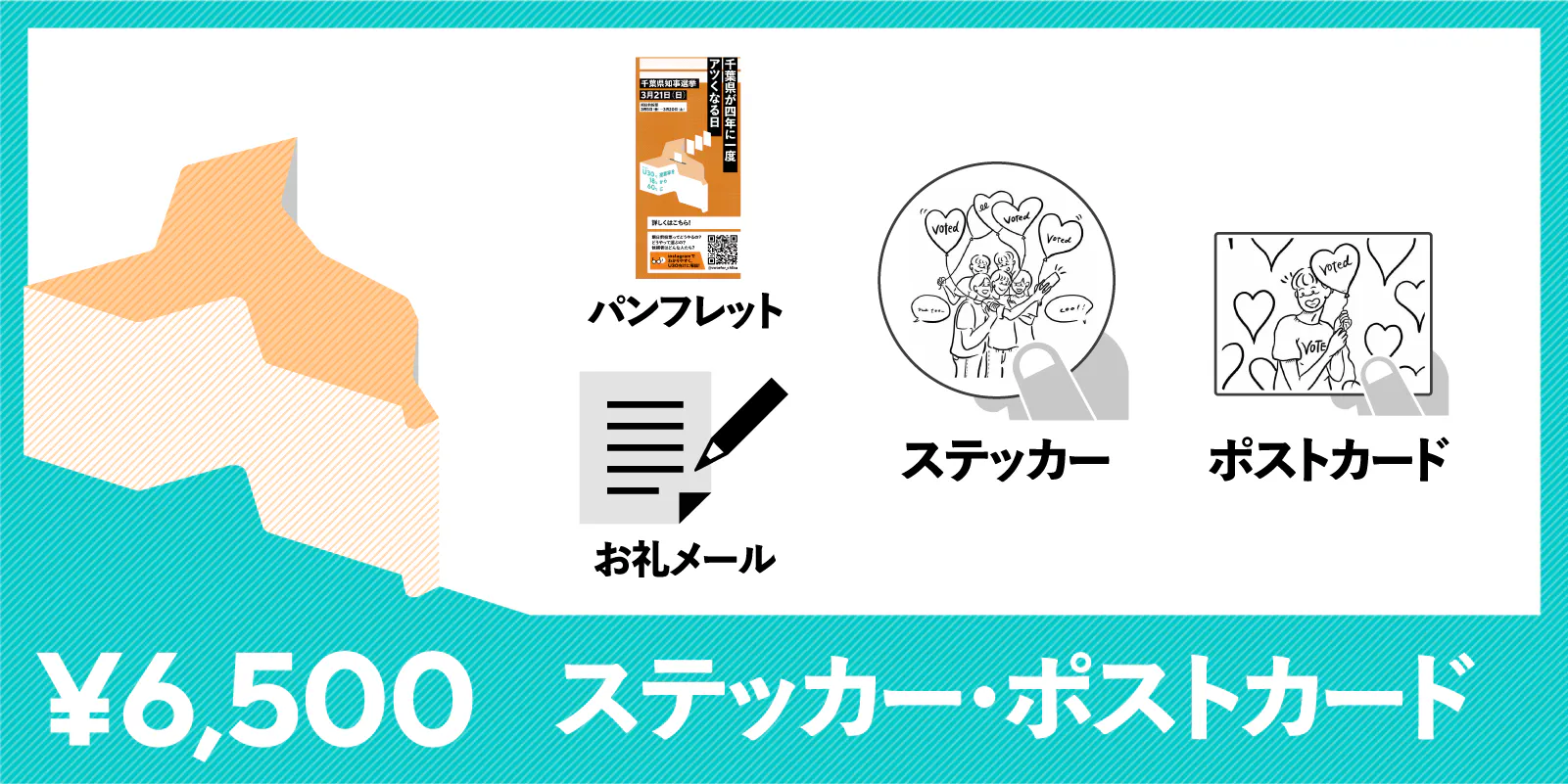 内容もデザインも全て自分たちで考え、5市の成人式や、県内の高校、千葉県の店舗を中心にパンフレットを配布しています。少しでも千葉県知事選挙に関心を持つきっかけを作りたい、私たち若い世代が取り組みをしていることが、同世代の中に広がってほしいという思いで作成しています。