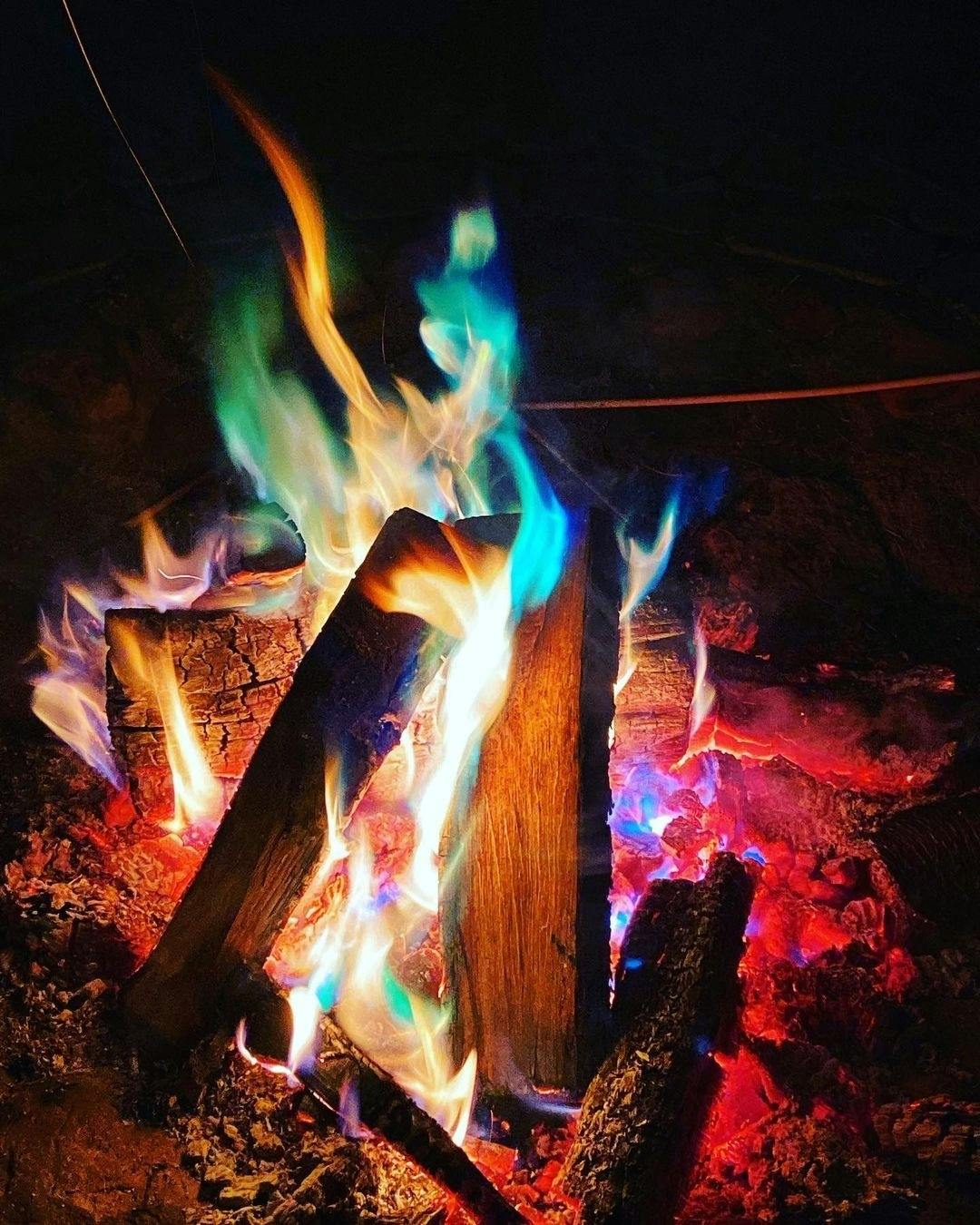 焚き火に投入するだけでレインボーの炎が出る魔法の粉です。