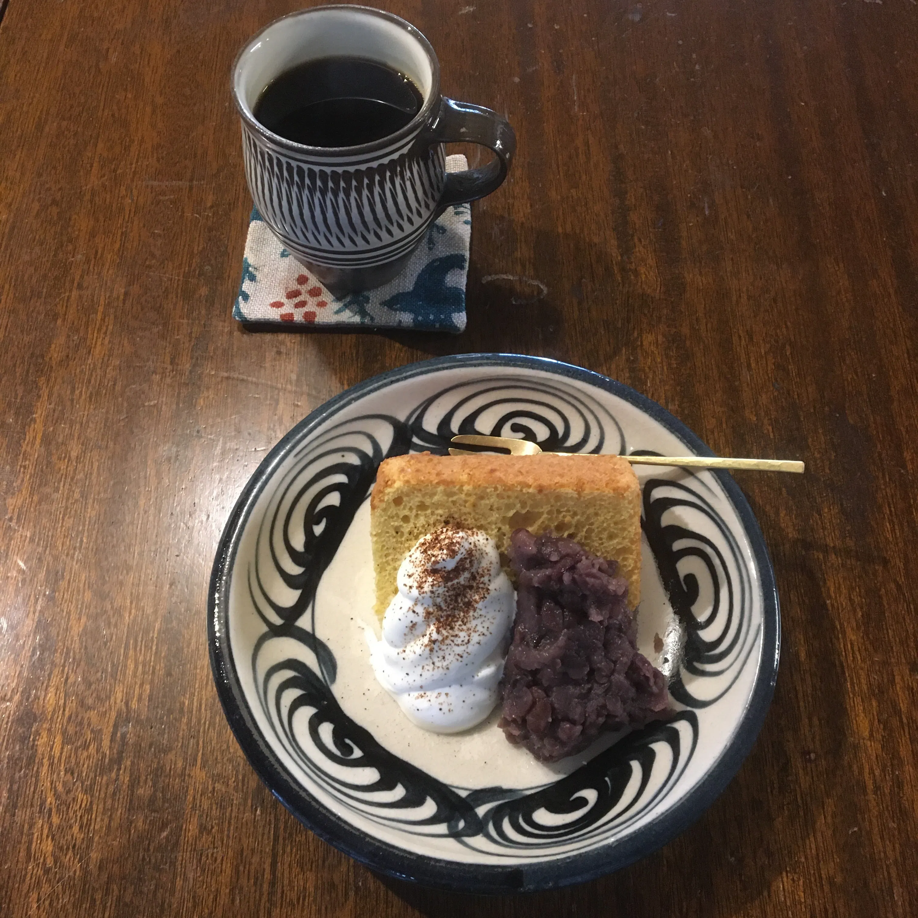 味噌シフォンケーキは生地にお味噌を使用。土鍋で炊いた自家製あんこも人気です。