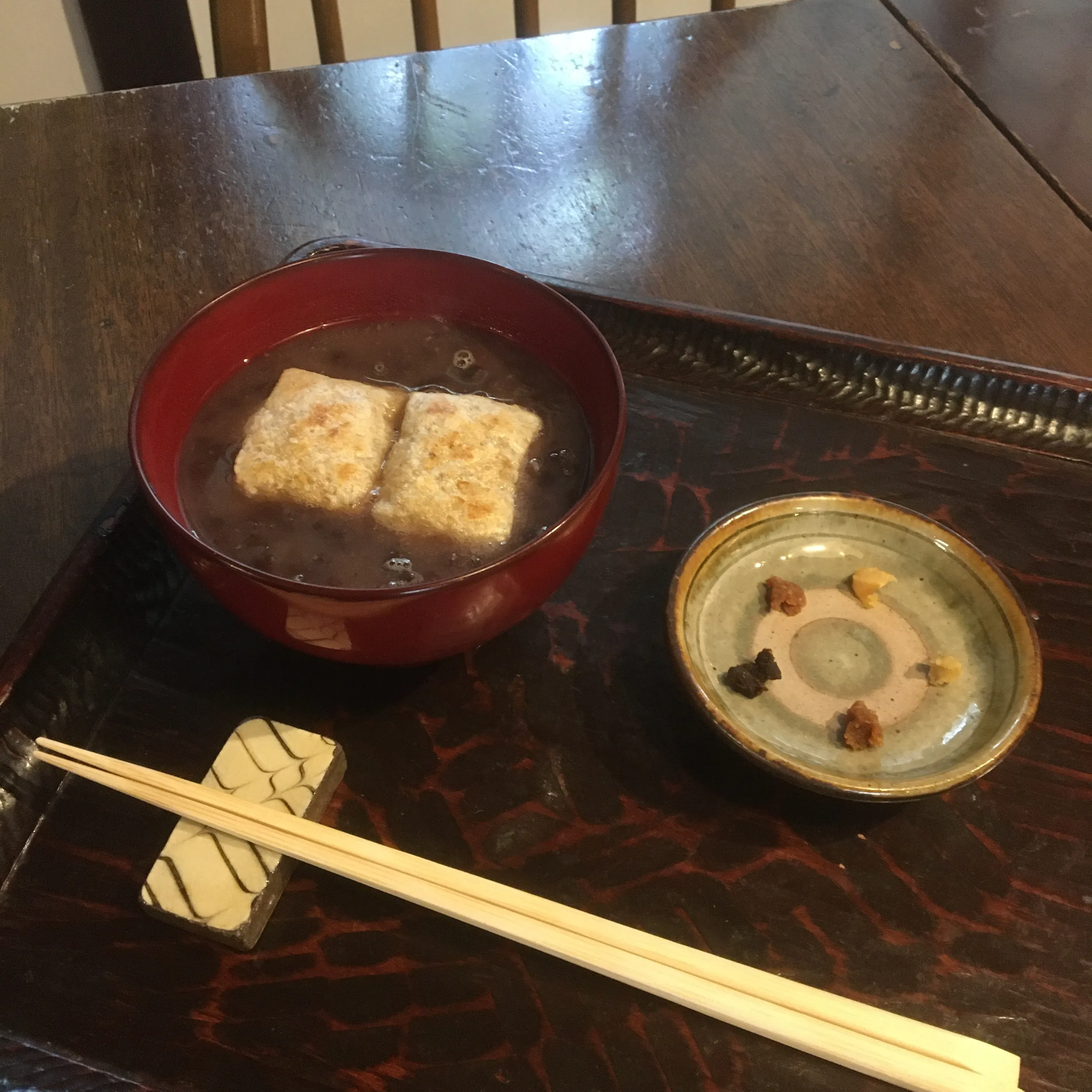 冬限定スイーツのぜんざいとお味噌の食べ比べセット。
