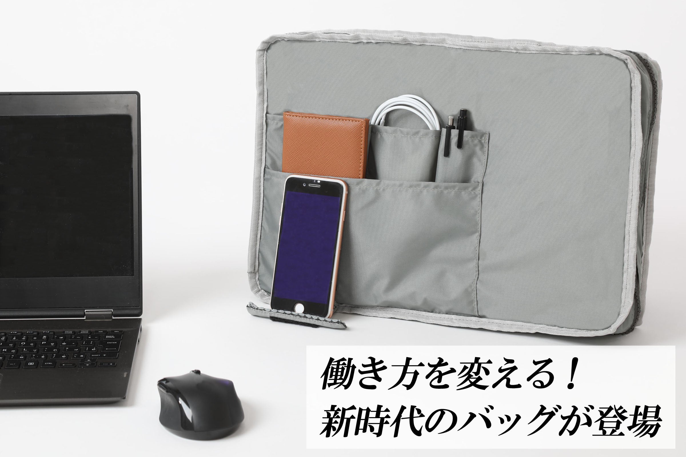 移動だけでなく、仕事でも使える新しい時代のビジネスバッグ。仕事に必要なものを持ち運び、裏返して、清潔な面を、ワークスタンドとして家でも活用する、スマートテレバッグ のご紹介です。今までになかったバッグの製作にチャレンジし、新しい時代に合ったバッグをお届けする為にプロジェクトを開始いたします。