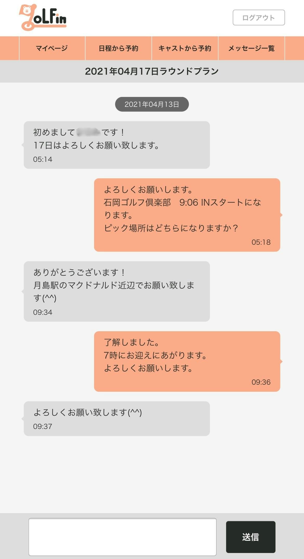 日時やプラン、ゴルフ場やアテンドしたい場所、希望キャストが決定したらご料金確認の上依頼をしてください。本予約に確約後、メッセージ機能により指名したキャストと事前の打ち合わせができるようになります。