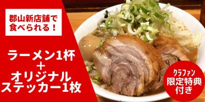 ちばから郡山店新店舗で使用できるラーメンチケット1枚とクラウドファンディング限定ステッカーをお送りします。