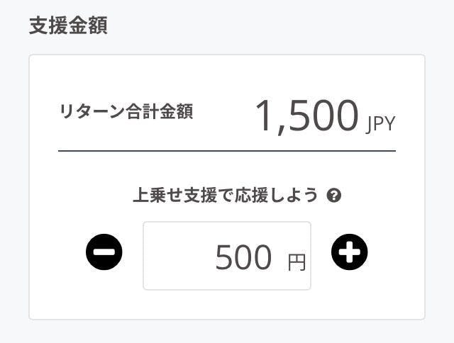 この場合は1000円のリターンを選択し、500円の上乗せ支援をしているので合計金額が1500円と表示されています。