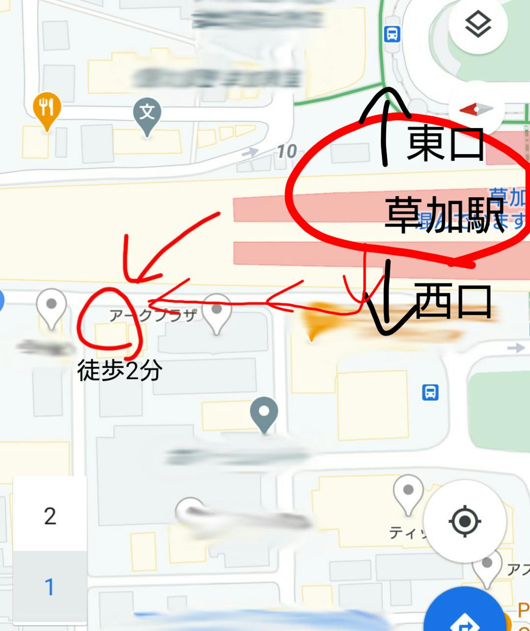 草加駅西口から徒歩2分、⭕️してある物件の3階です。