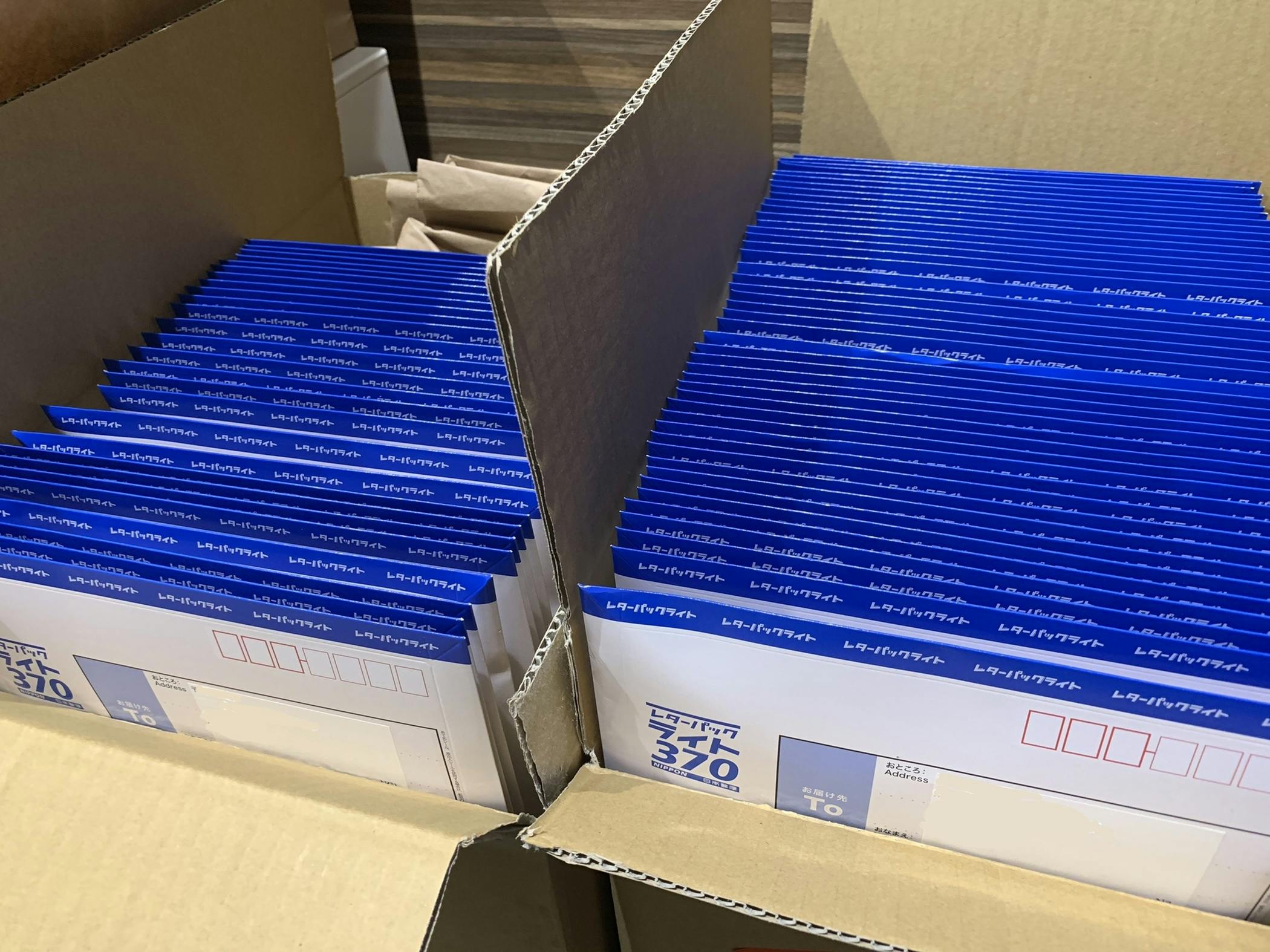2021/05/29 09:59みなさん、こんにちは。本プロジェクト起案者の岩渕加奈子です。ただいま梱包作業を進めています。郵便局さんに5月31日に集荷にきていただく予約をしましたので、みなさんのお手元にはおおよそ6月1日~3日の間に届く予定です。選択したリターンが3冊以下の方は、ポスト投函となりますのでよろしくお願いいたします。楽しみにしていただければ嬉しいです。大量のレターパック!今はネットで注文して宅配していただける時代でよかったです。郵便局のホームページを見ると、レターパックプラスは集荷をしてくださるんですが、レターパックライトは集荷の対象外なんだそうです。ご存じでしたか?個人では集荷のお願いをすることがなかったので、私は初めて知りました。集荷担当の郵便局に念のため電話で問い合わせたところ、やはりレターパックライトは集荷できませんとお断りされたので、せっせとあちこちのポストに投函しようか?とか、近くの郵便局まで何往復もしようか?とか悩んでいたのですが無事解決しました。もう一度ダメもとで郵便局に電話をしてみたところ、今回はゆうパックの発送もあるので……ということで集荷に来ていただけることになりました。(郵便局さんありがとうございます!)そんなラッキーな配送を引き寄せる日記帳は、1冊ずつPP袋に入れてお届けします。感謝の気持ちを込めて作業していますので、お手元に届くまでもう少しお時間をくださいますよう、よろしくお願いいたします。 もっと見る