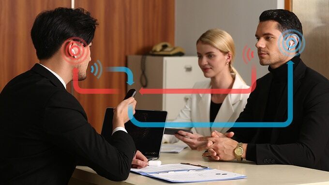 フォーマルな場でのスマートフォンを使用した翻訳はセキュリティ上の問題があります。データがスマートフォンやアプリに表示されたり残ったりするからです。Vomorを使用すると、そうしたリスクを下げられます。