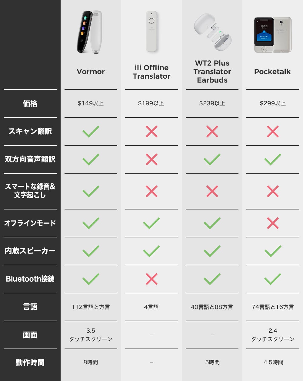 Vormorは、翻訳デバイスの開発を専門にする経験豊富なR&Dチームです。Vormorでは、翻訳の正確さと速度だけでなく、すべてのお客様のユーザーエクスペリエンスも重視しています。ソフトウェアとハードウェア両方の設計と技術を革新することで絶え間なく製品の改良を行っており、それにより、お客様が世界中どこにいてもコミュニケーションに不自由しないツールを提供しています。