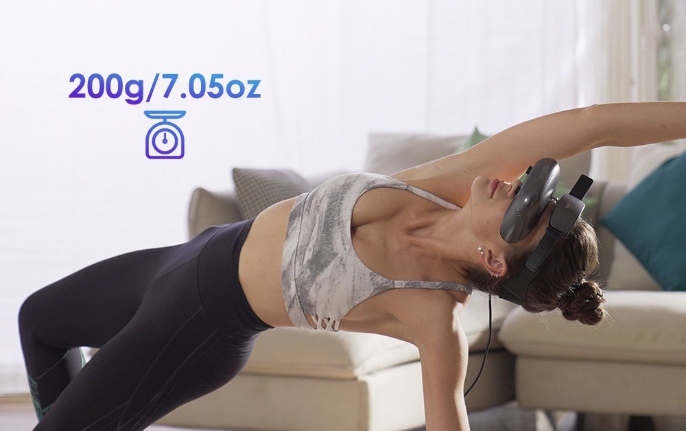 重量はたったの200gです。GOOVIS LITEは、持ち運びに便利なだけでなく、付け心地も非常に快適です。