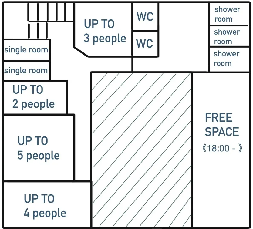 ・1人部屋から5人部屋までをご用意※1人部屋以外は全て鍵付きの完全個室。