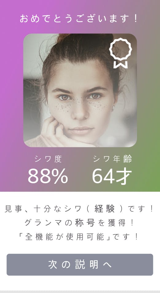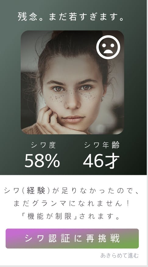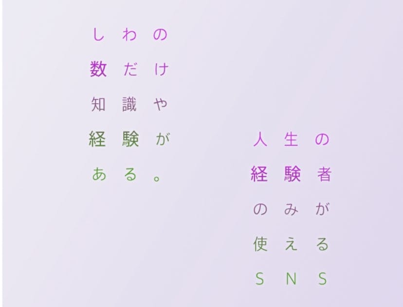 ベテランの人たちのためのwebアプリであるため、しわ認証システムを導入予定です。しわ認証を通過した人だけがこのアプリを使用できます。しわの数だけ知識や経験がある。人生の経験者のみが使えるアプリとして導入予定です。