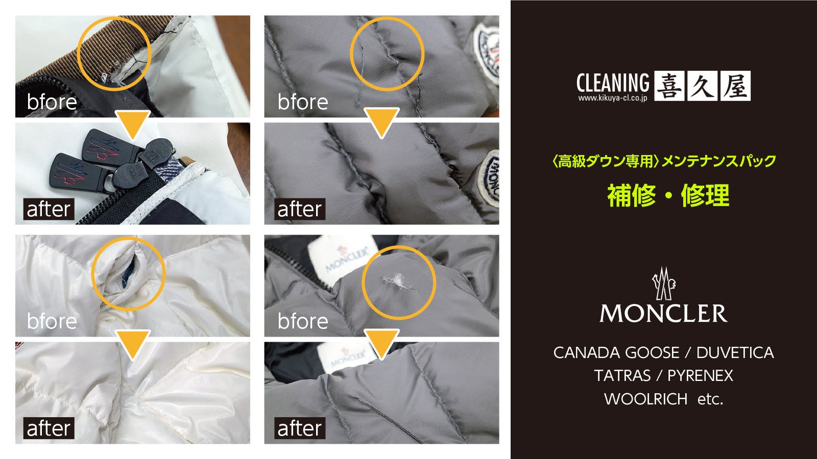 当社では高級ダウン用の上級クリーニングと衣類の補修・修理を一つにまとめた、高級ダウンウエアに特化したメンテナンスパックを作りました。手軽に高級ダウンのメンテナンスをご利用いただけます。