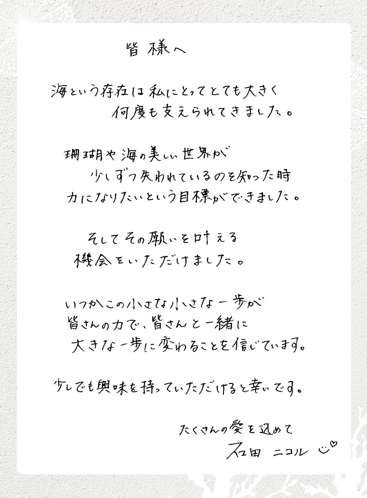 今、私にできることは少しでも多くの皆様にこの現状を伝え、海の環境問題について一緒に考えるきっかけを与えることだと思い、今回このプロジェクトを発足させました。