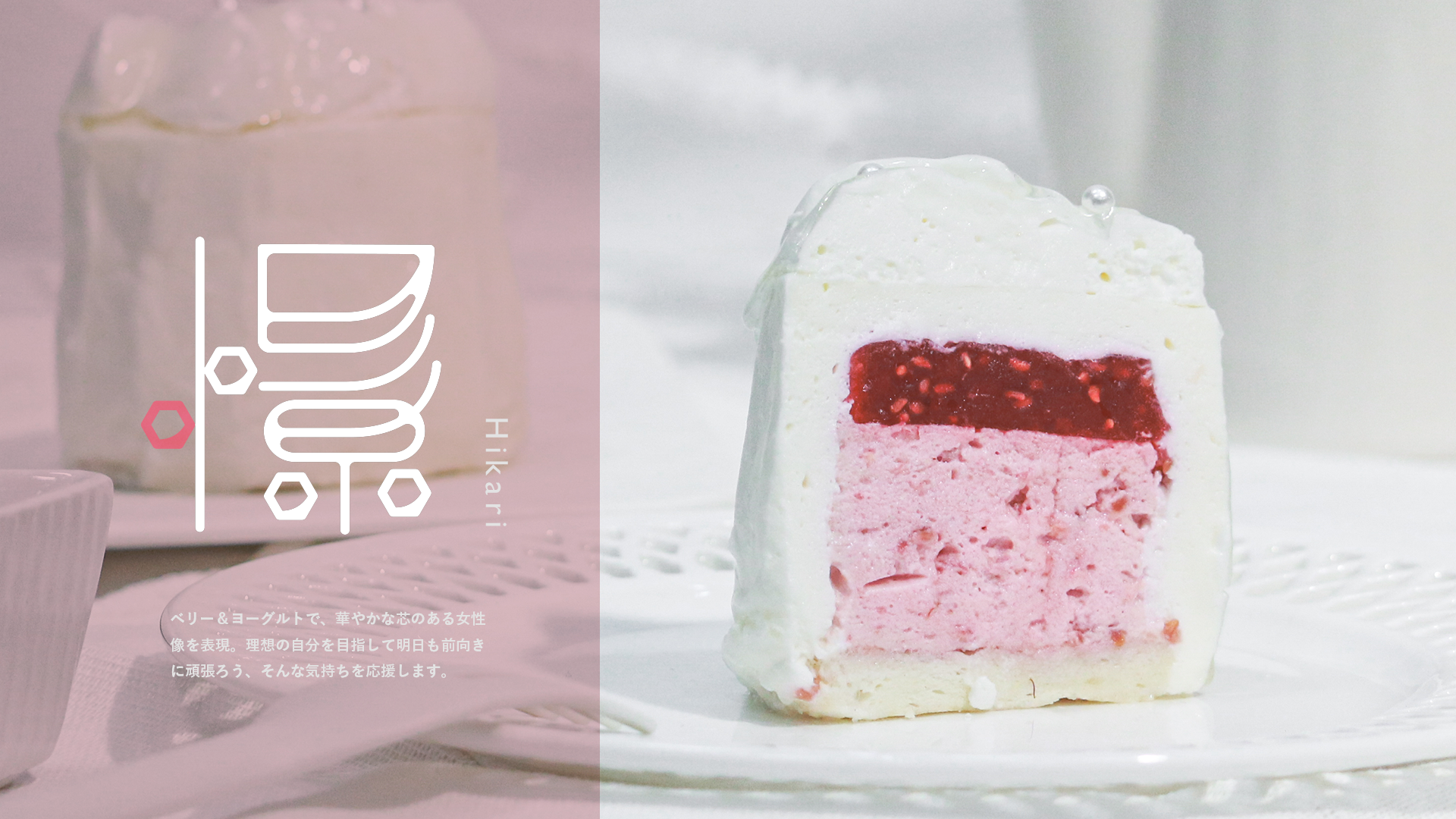 甘酸っぱいラズベリー&いちごのムースとベリーのソースを、口どけの良い艶やかなヨーグルトムースで包み、華やかな芯のある女性像を表現しました。