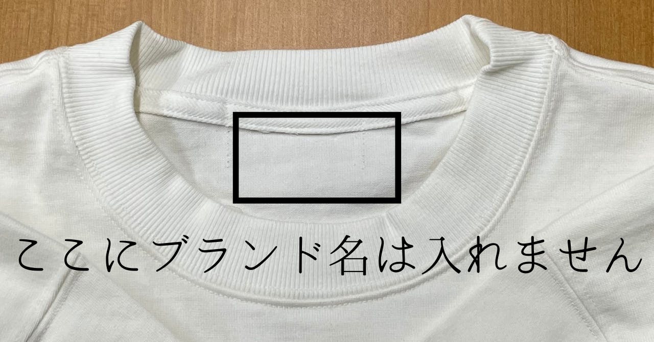 ここは大体「ブランド名」があると思いますが、ブランド名ではなく、このTシャツに携わった工場名を記載したいと思います。どんな工場が作ったのか気になって調べてみてもわかりませんよね?品質の証明として工場名をここに記載します、証明と言う意味でブランド名と変わらないと思います。