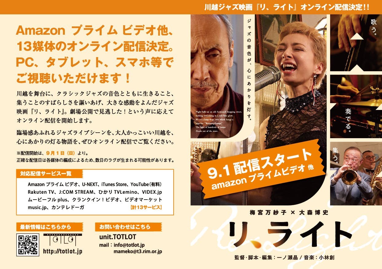 【ご報告】川越ジャズ映画『リ、ライト』、待望の舞台化!チケット発売開始!!