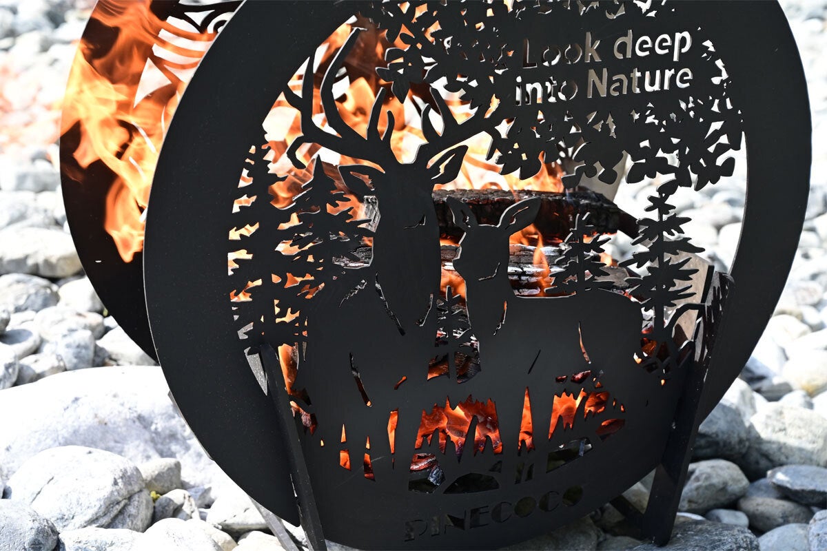 観賞に特化した円形の焚き火台、美しい絵のシルエットと燃える炎を見つめて癒されたい