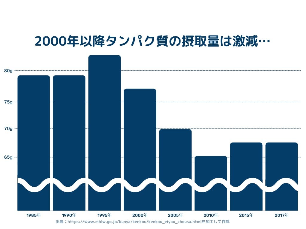 2000年代に入って以降、日本人のタンパク質の摂取量は激減。